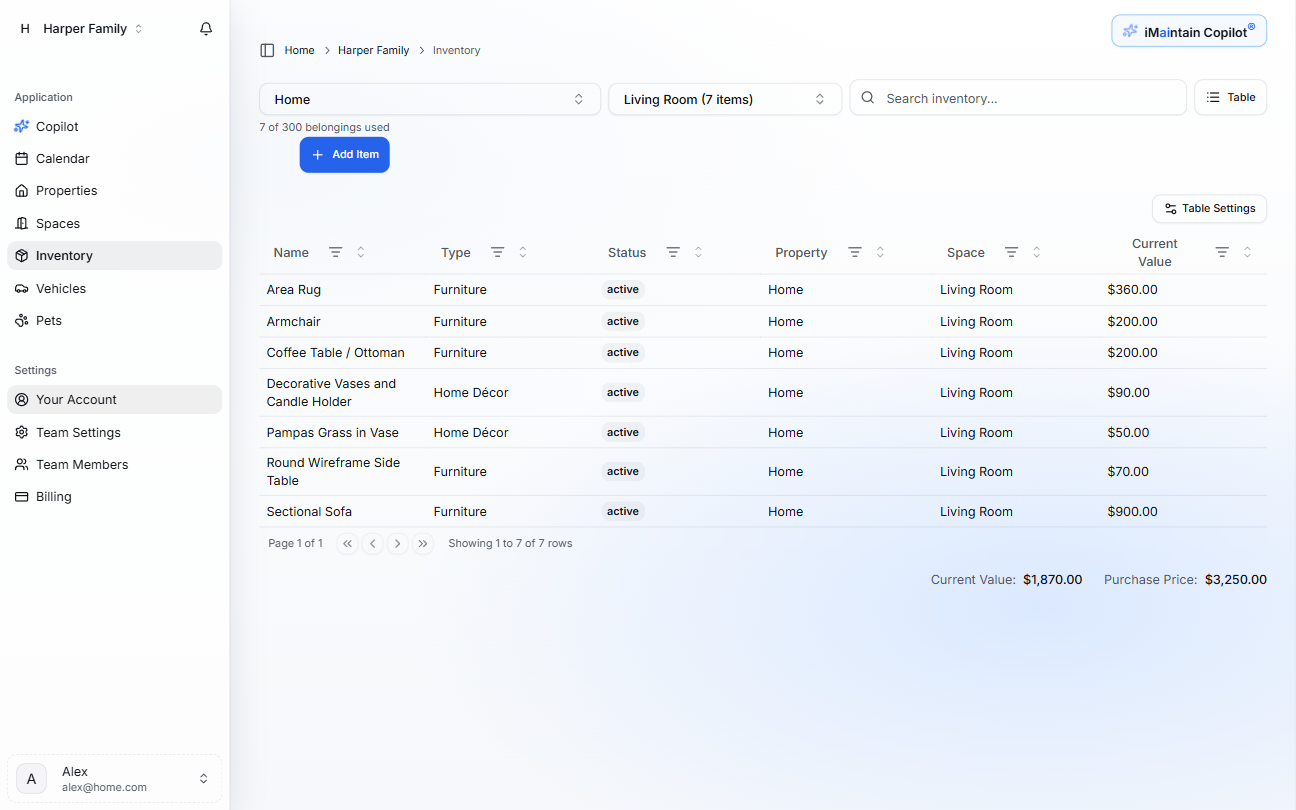 iMaintain allows multiple people to help manage and maintain shared assets. Perfect for households and property managers.