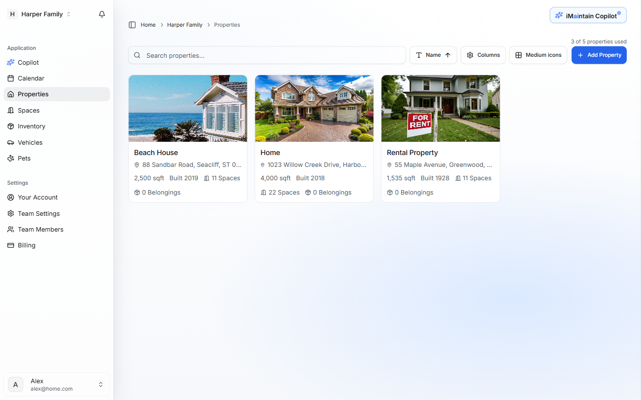 Track maintenance, service providers, and documents for your home or rental properties.
